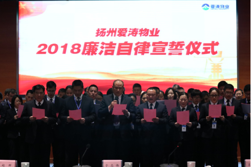 為切實(shí)加強(qiáng)公司管理人員的廉潔自律,認(rèn)真落實(shí)廉潔奉公的工作作風(fēng),2018年3月18日,愛(ài)濤物業(yè)組織全體中層人員及領(lǐng)導(dǎo)班子成員在紫京飯店報(bào)告廳舉行了廉潔自律宣誓儀式,并現(xiàn)場(chǎng)簽訂了《廉潔自律承諾書(shū)》。